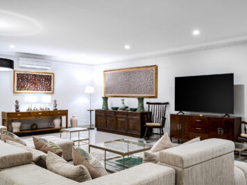 Stepping inside feels like entering a private gallery of Indonesian heritage. Villa Agung is rich with history and meaning, where every curated piece has a story to tell. Treasured family heirlooms and rare collectibles fill the interiors—including furniture once gifted to the owners by a former President of Indonesia, a magnificent sailboat sculpture meticulously crafted from cloves, and a graceful woman’s statue created entirely from coins. These distinctive touches infuse the residence with soul and authenticity—qualities seldom found in modern luxury villas.