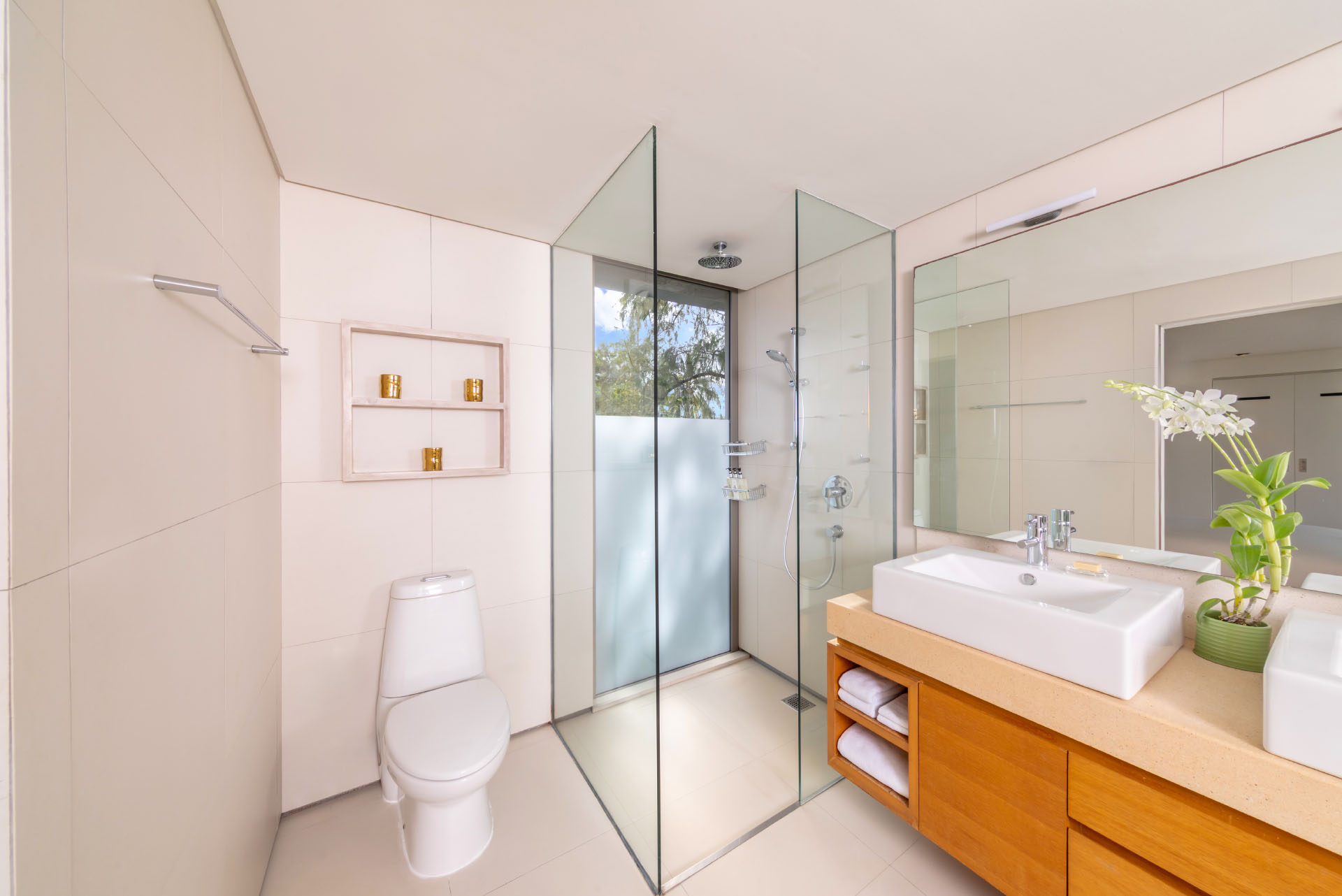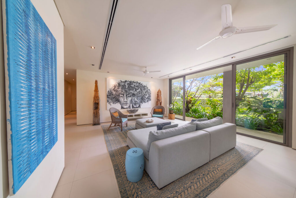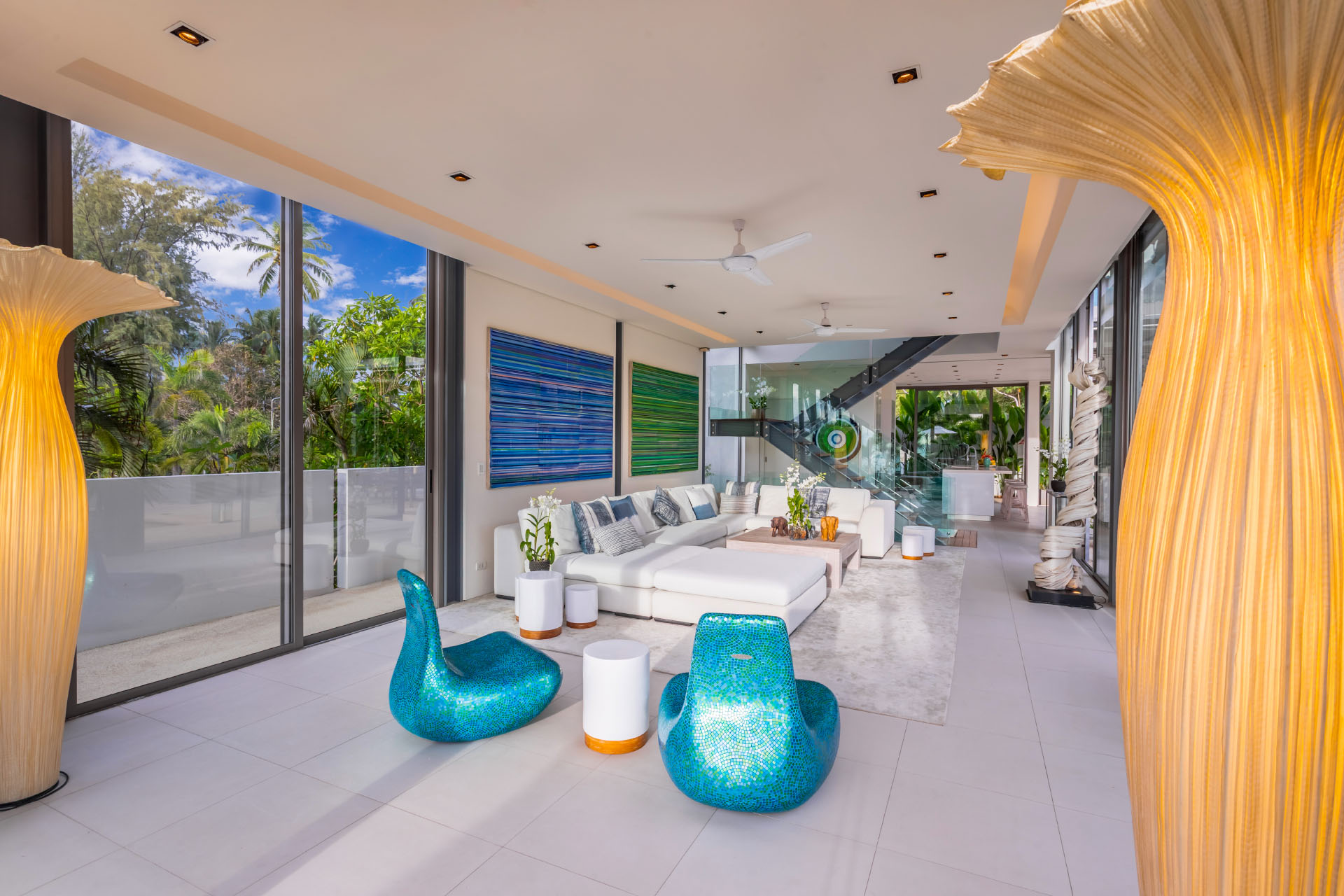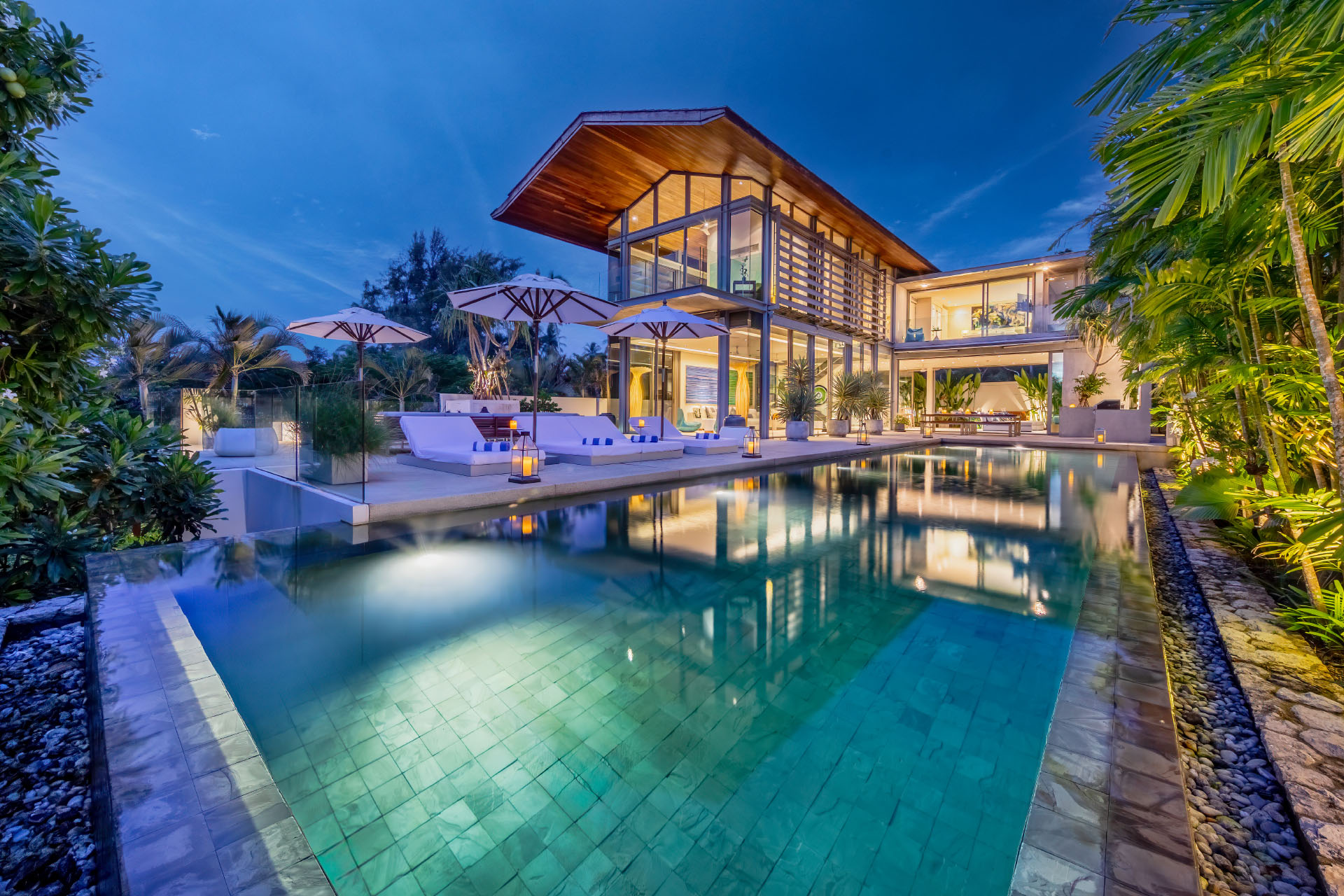 The villa’s open-plan design invites the outdoors in, with floor-to-ceiling glass panels framing panoramic views of the Andaman Sea and filling the interiors with natural light. Two king-bedded master suites and two versatile twin bedrooms are thoughtfully appointed, each designed with a minimalist aesthetic that promotes rest and relaxation. Spacious communal areas—including an elegant living and media room, an inviting outdoor lounge, a well-equipped guest kitchen, and a sun-kissed pool deck—create an effortless flow between indoor comfort and alfresco living.