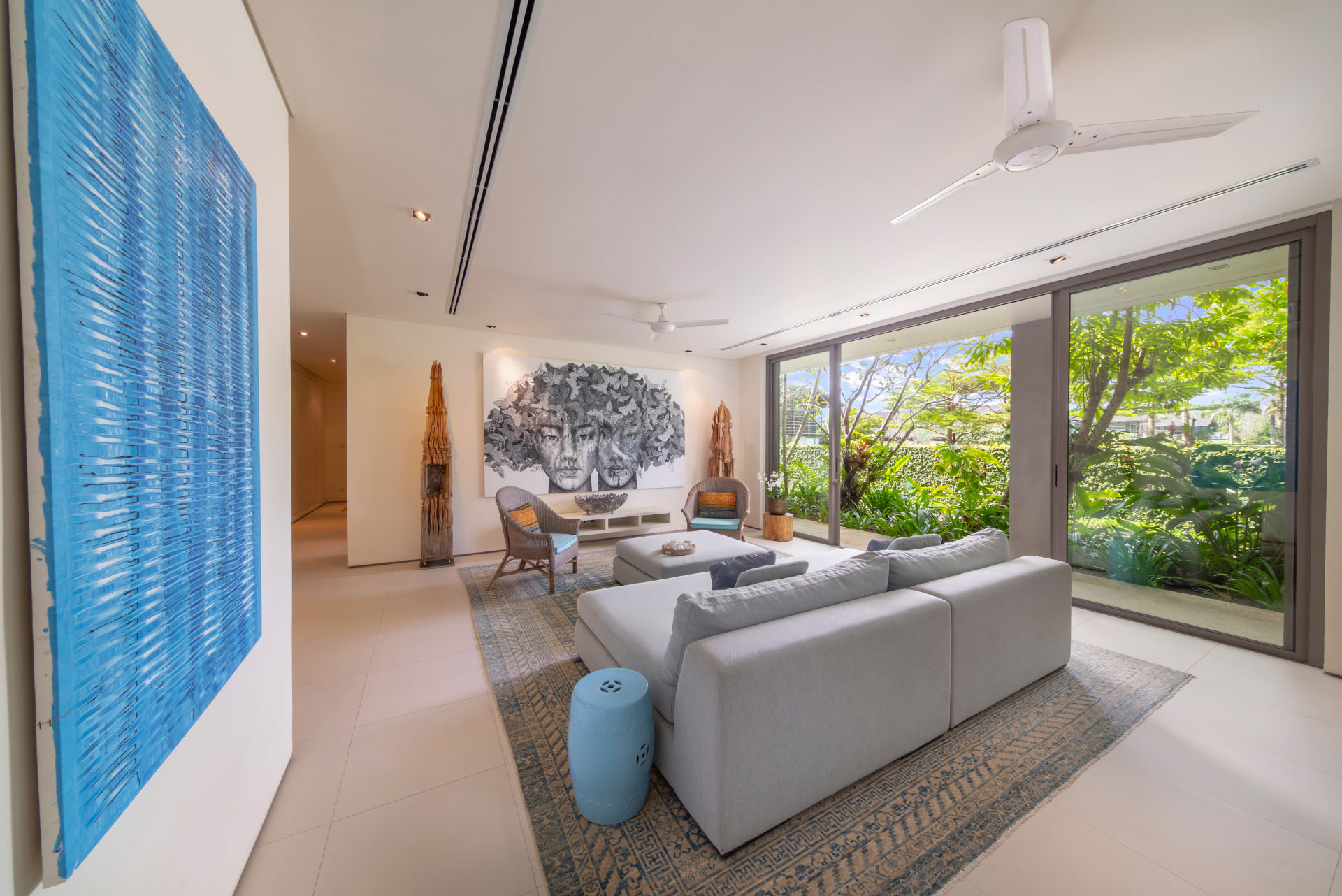 An 18-meter infinity pool forms the centerpiece of the villa, perfect for morning laps or lazy afternoons under the sun. For leisure and entertainment, guests can retreat to the family media room, enjoy games with loved ones, or indulge in wellness at the private spa, complete with massage beds, a sauna, steam room, and cold plunge bath. Those wishing to stay active can also access the estate’s shared gym or take advantage of the villa’s paddle boards, bicycles, and kayaks.