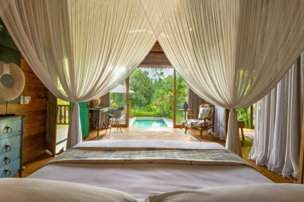 Mornings unfold gently here — birdsong, a soft breeze through palm leaves, and the sweet aroma of frangipani guiding you into the day. Hours can be spent unwinding by the pool, surrounded by lush tropical foliage, or wandering beyond the estate to explore the culture, craftsmanship, and enchanting landscapes of Ubud. At day’s end, you return to a private haven that restores the body and soothes the mind.