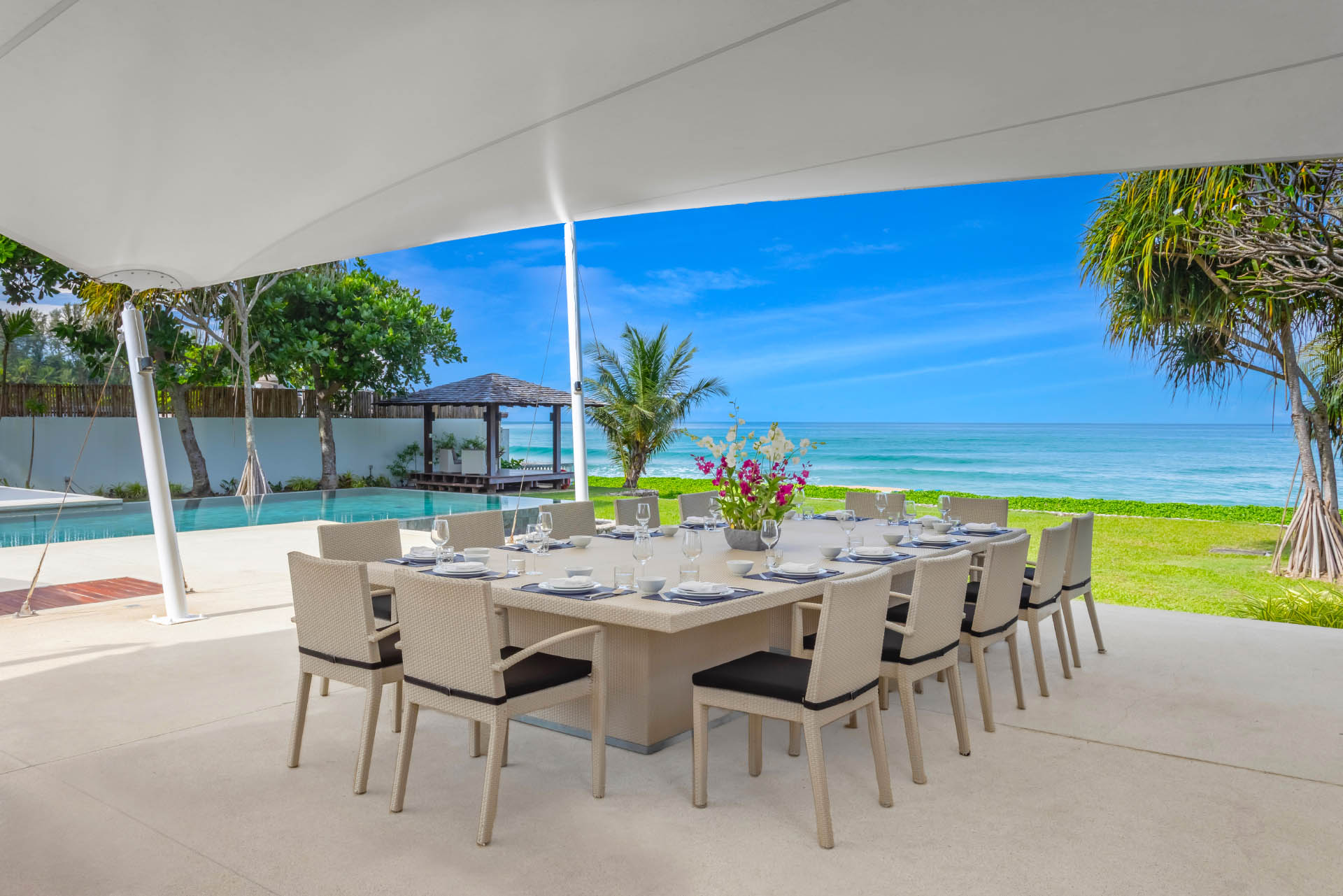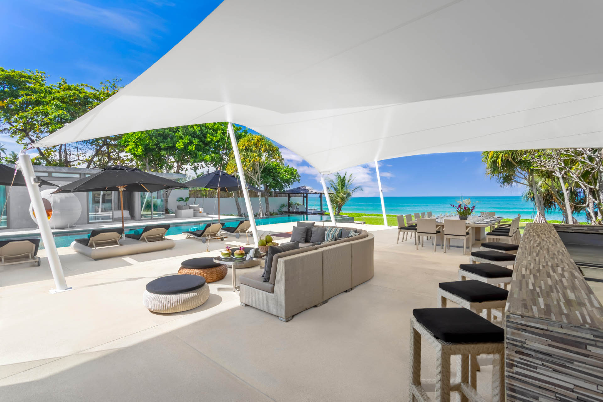 Product Description: Villa Tievoli is the epitome of tropical luxury, a magnificent 7-bedroom beachfront retreat set along the tranquil shores of Natai Beach in Phang Nga. With sweeping views of the sparkling Andaman Sea and exclusive private beach access, this villa offers the perfect blend of seclusion, sophistication, and indulgence. Ideal for extended families, couples, wedding parties, or groups of friends, it provides a sanctuary of endless space, amenities, and freedom in a serene coastal setting.