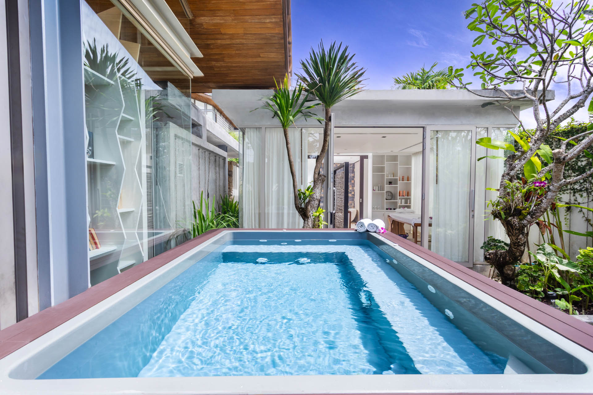 - Saltwater infinity swimming pool (Length 25m x Width 6m x Depth 1.3m)